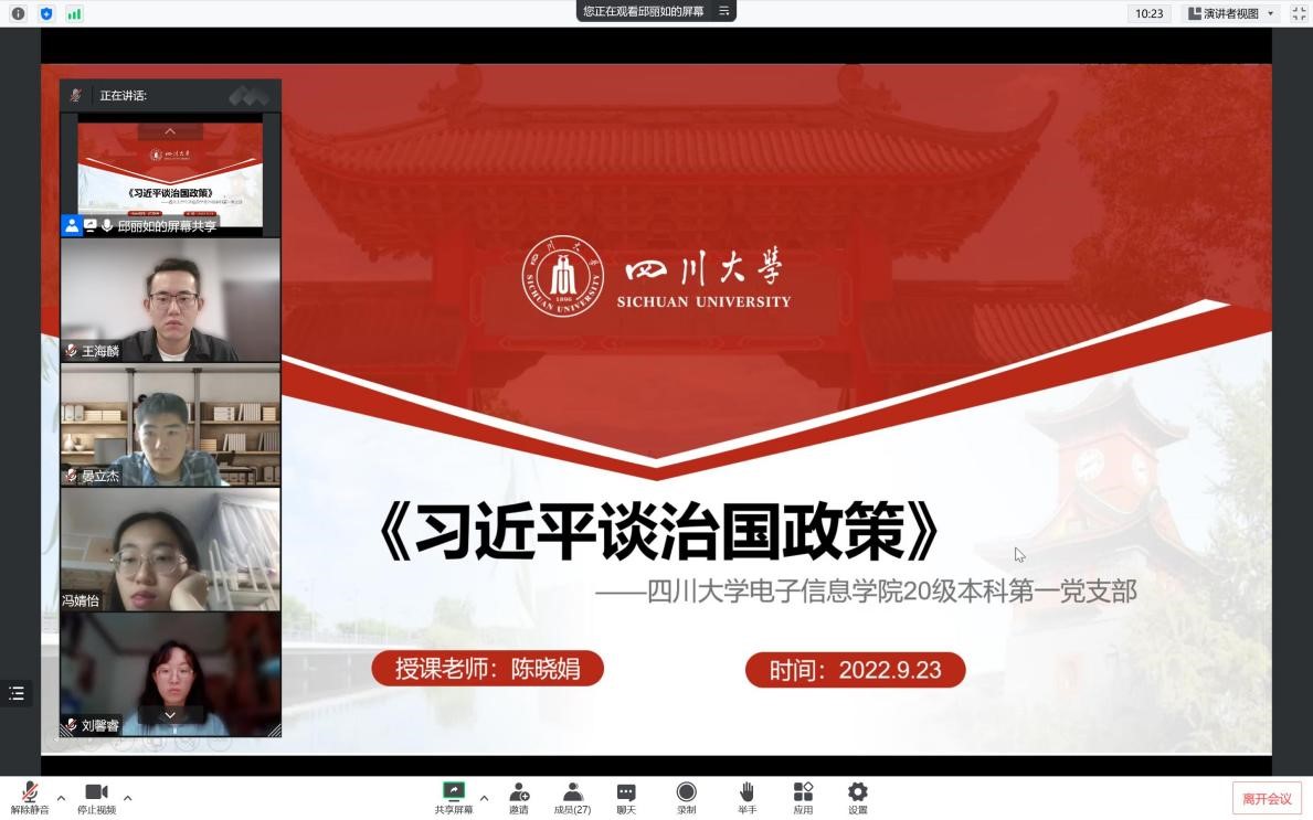 20级本科第一党支部于线上腾讯会议开展了党的组织生活会。本次活动的主讲人为党支部书记陈晓娟老师,参会人员为党支部全体成员。