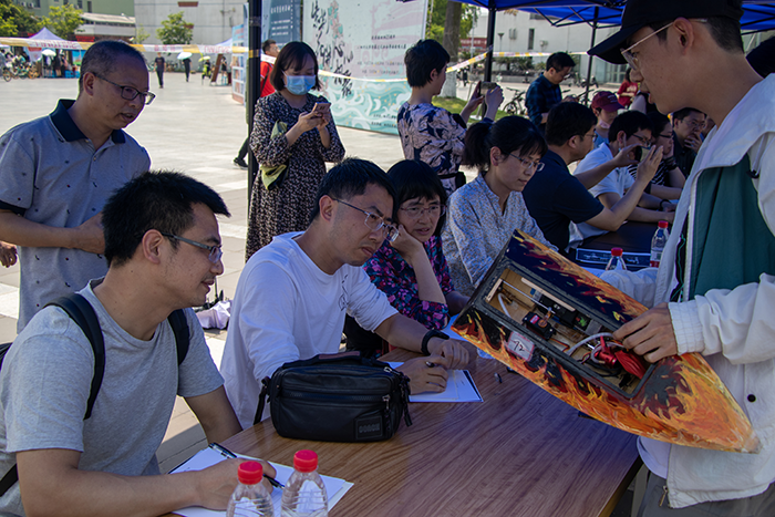 在答辩评分环节中,参赛选手们分组向评委们介绍自己船体的相关理念和技术,同时评委们也提出了一些专业问题以更好的了解同学们的设计思路。