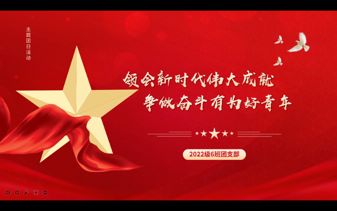 2022级6班团支部于线上举行了主题为“领会新时代伟大成就,争做奋斗有为好青年”的主题团日活动。