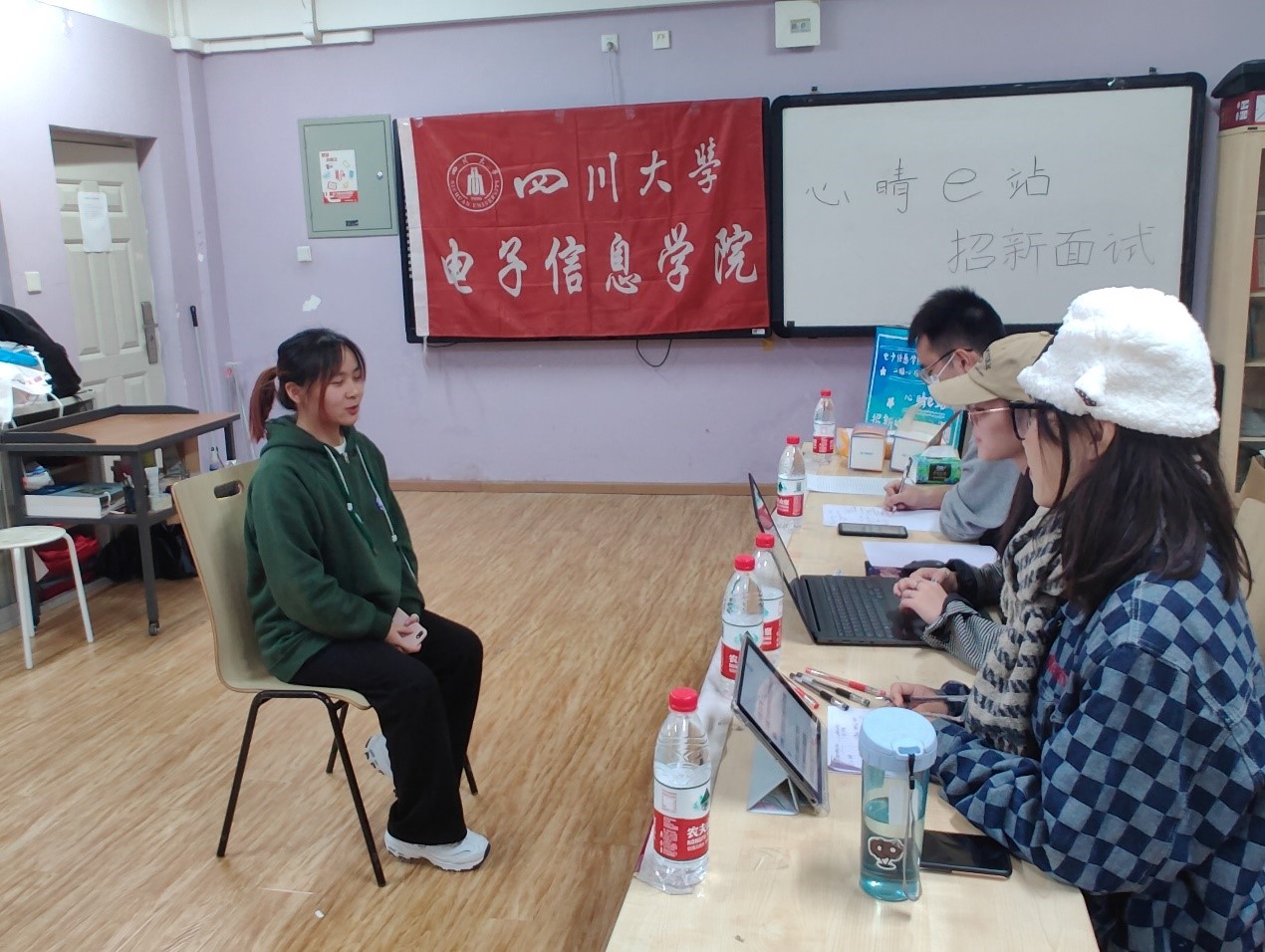 望江校区与江安校区同步开展了招新面试,2022年度招新工作顺利完成。其中,望江校区招新面试地点为东区第三教学楼电子“心晴e站”活动室,学生副站长杨斯涵为面试主负责人;江安校区招新面试地点为小欧视频