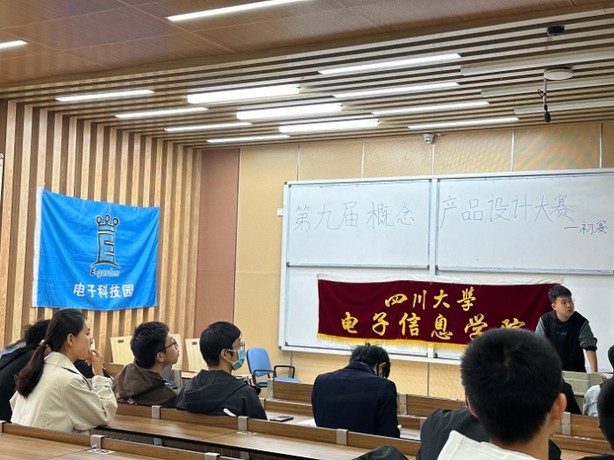 概念产品设计大赛初赛在综合楼C座507教室举行,比赛的形式是交纸质版作品报告,并进行PPT现场展示。出席初赛的有小欧视频