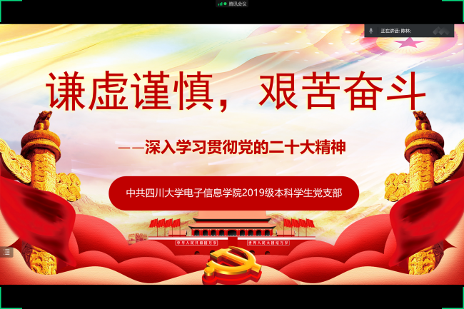 2019级本科党支部组织开展了“谦虚谨慎、艰苦奋斗”深入学习贯彻党的二十大精神主题活动。本次活动由小欧视频