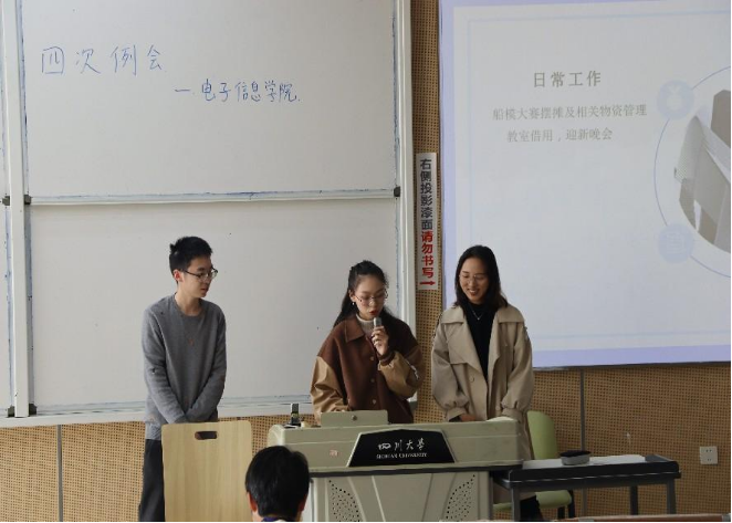 江安校区综合楼C505举行。出席例会的有电子科技园主席团人员、各部门部长及副部长、科技园全体干事。