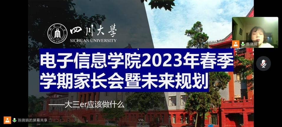 陈晓娟老师首先向家长们展示大三上学期各专业成绩数据,针对成绩所暴露的相关问题给出指导意见,让家长们明白在大三下学期这个时间节点上,自己的孩子需要针对自身的学习情况应该要做好怎样的未来规划。接下来,陈晓娟老师分别对家长会的五个部分做出了详细的阐释。在“保研”这个部分中,陈晓娟老师清晰解释了什么是保研以及这个过程中常见的推荐、免试、接收等专业术语的概念,说明了保研途径主要包括保研夏令营、推免保研、支教保研、补偿名额等,明确了本学院的综合测评结果的测算方法,并向家长们介绍了具体的保研流程,便于学生按照时间线来依次做好准备工作。在“考研”这个部分中,陈晓娟老师向家长们解释了考研全年的具体流程和各个准备阶段,讲解了考研中的英语、政治、数学和专业课的具体考试形式和考试内容,对考研中的5条线——国家线、学校线、学院线、复试线和录取线做出了解释和区分,也进一步对比了学硕和专硕的异同点,解答了广大家长心中的疑问。为了方便学生自己搜集考研信息,老师在PPT上列举了研究生招生信息网、目标院校的研究生院官网、考研论坛等具有代表性的平台,供大家学习交流使用。在“出国”这个部分中,陈晓娟老师介绍了学校的中英办,也将最近川大与国外各大高校的联合教学项目做了介绍,可以帮助不同学习水平、不同未来规划方向、不同就业倾向的本科阶段学生,正确选择适合自己的国外高校。在“考公”这个部分中,陈晓娟老师首先向家长们关于国考、省考、选调生考试做了讲解和区分,列出了历年国家公务员考试时间安排表,最后结合2023年四川省面向小欧视频