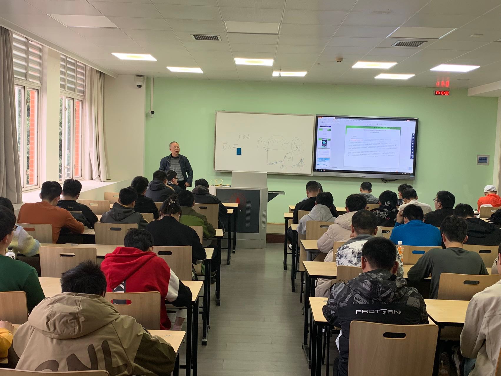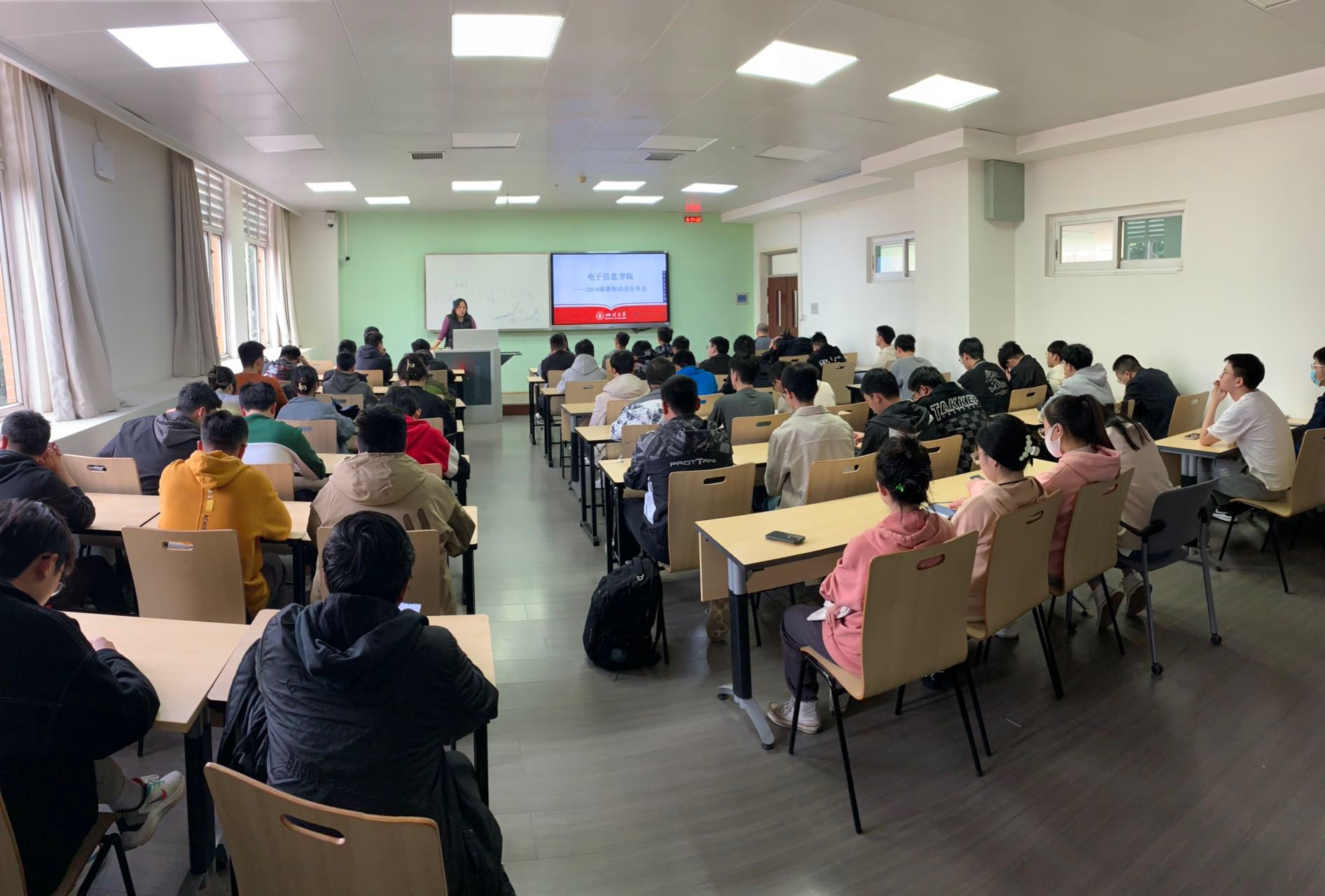 在廖书记开场致辞后,同学们倾听陈林老师讲解今年考研的情况。陈林老师对往年以及今年考研学校统计成绩进行了分析,鼓励了同学们积极进行复试,并就调剂信息渠道进行了详细讲解,对之后学校会给予同学们的帮助进行了讲解。