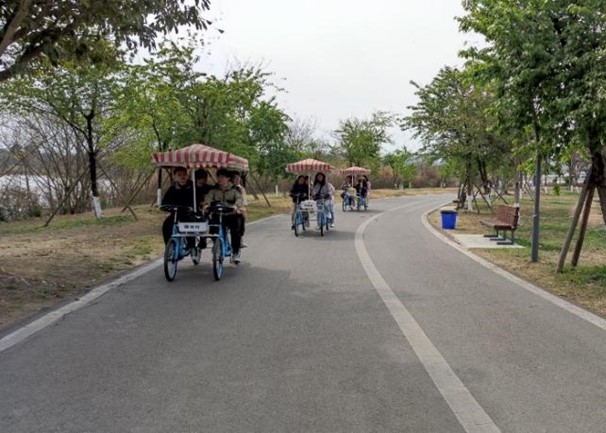 繁花夹岸,微风和畅,同学们共同驱车进行环湖骑行活动,相互畅谈、放声歌唱。此次主题团日活动以团队骑行为媒介,达到强身健体目的的同时还激发了同学们的运动热情与团队协作精神,号召大家要从自身做起,共同推动体育强国、健康中国建设走深走实。