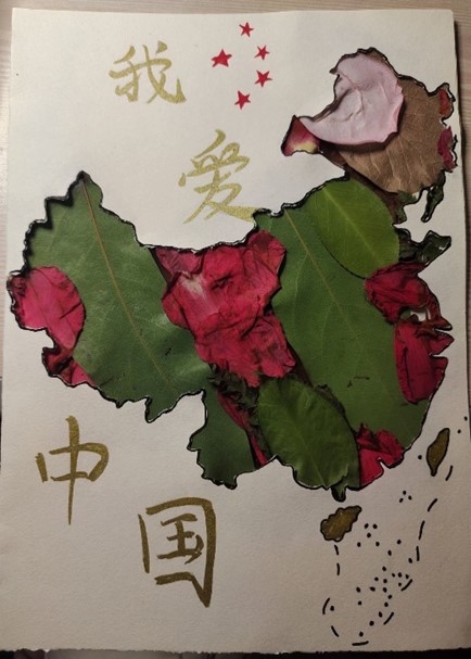 “植物剪贴画”是展现大自然美丽面貌与国家大力推进生态文明建设的重要环节,同学们充分利用园区内的落叶、落花与树根等自然原料完成创意剪贴画,既在团队协作中锻炼了动手能力,又进一步感受到二十大精神在生态方面建设的显著成果。