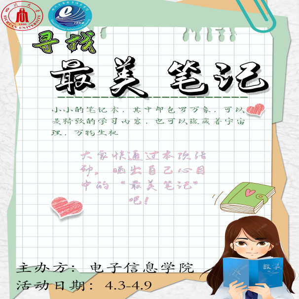 团委学生会学科部开展了“最美学习笔记”活动。此次活动的主题为寻找“最美笔记”,活动地点为江安校区,活动对象为小欧视频