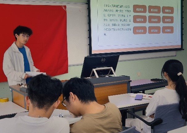 在同学均准时到场后,主讲人宣布本次主题团日正式开始。首先,同学们认真观看了一部有关国家安全日的概括短片,收获颇丰。之后,主讲人介绍了国家安全日所设立的现实意义,国家安全日的设立不仅有利于国家总体安全观的建立,还有利于政府和社会公众维护国家安全法律意识的提高以及国家安全法普法宣传效果的提高。紧接着,主讲人介绍了国家安全日的一些基本内容,包括什么是国家安全、国家安全的内容构成、什么是威胁国家安全的行为等。在经过前三个模块的学习,同学们虽然对国家安全日有了全新的理解,但缺乏对这些知识更加灵活的运用。于是主讲人就讲过的内容,组织同学们进行知识竞答。同学们兴致盎然,纷纷投身到答题的过程中,在答题过程中,同学们不仅巩固了学到的知识,并且对国家安全也有了更深入的了解。