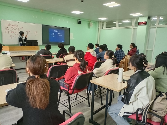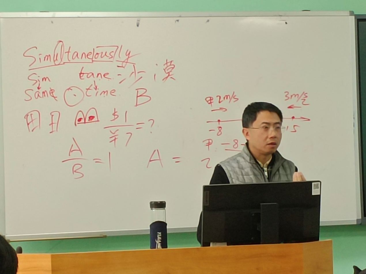 会议开始,陈雨老师首先提出了在大学自学的重要性。他指出:在高中靠刷题掌握的知识是不牢固的,在大学,我们要通过自学和自我思考搭建属于自己的知识桥梁,行之于上,才会轻车熟路。然后,陈雨老师向同学们抛出了一个问题“人为什么要活着”,在同学们简短的思考过后,他梳理了从地球诞生之初到如今的文明演化,其中人类文明只占极小的一部分,他解释说:只有认识到人类的渺小,我们才会思考为什么而活,才会拥有一个更有意义的人生。 最后,陈雨老师用诙谐幽默的语气分享了他自己的大学学习经历。结合自身经历他提出一个重要公式:做成一件事情=原始兴趣+成就感。以此来激励同学们培养自身爱好,通过不断的学习来体验大学生活。