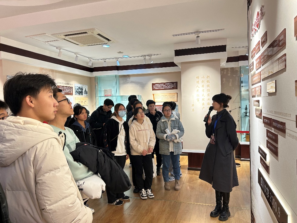 本次活动分为三个部分:参观江姐纪念馆,校园红色定向活动,参观校史馆。在讲解员的带领下,同学们陆续进入江姐纪念馆,了解革命烈士江姐的生平事迹。沿着红色长廊前行,一幕幕感人至深的革命故事映入眼帘,一个个敢于奉献的革命英雄令人敬仰。参观完纪念馆,团支书艾宇飞同学面对团旗,举起右手,带领全体团员重温入团誓词,“我志愿加入中国共产主义青年团,……为共产主义事业而奋斗!”同学们更加坚定了为党和国家事业奋斗终生的信念,更加明确了要将自我融入国家发展的奋斗目标。参观尾声,同学们在一张张明信片上写下想对江姐说的话,表达对江姐的怀念和对红色精神的敬仰。