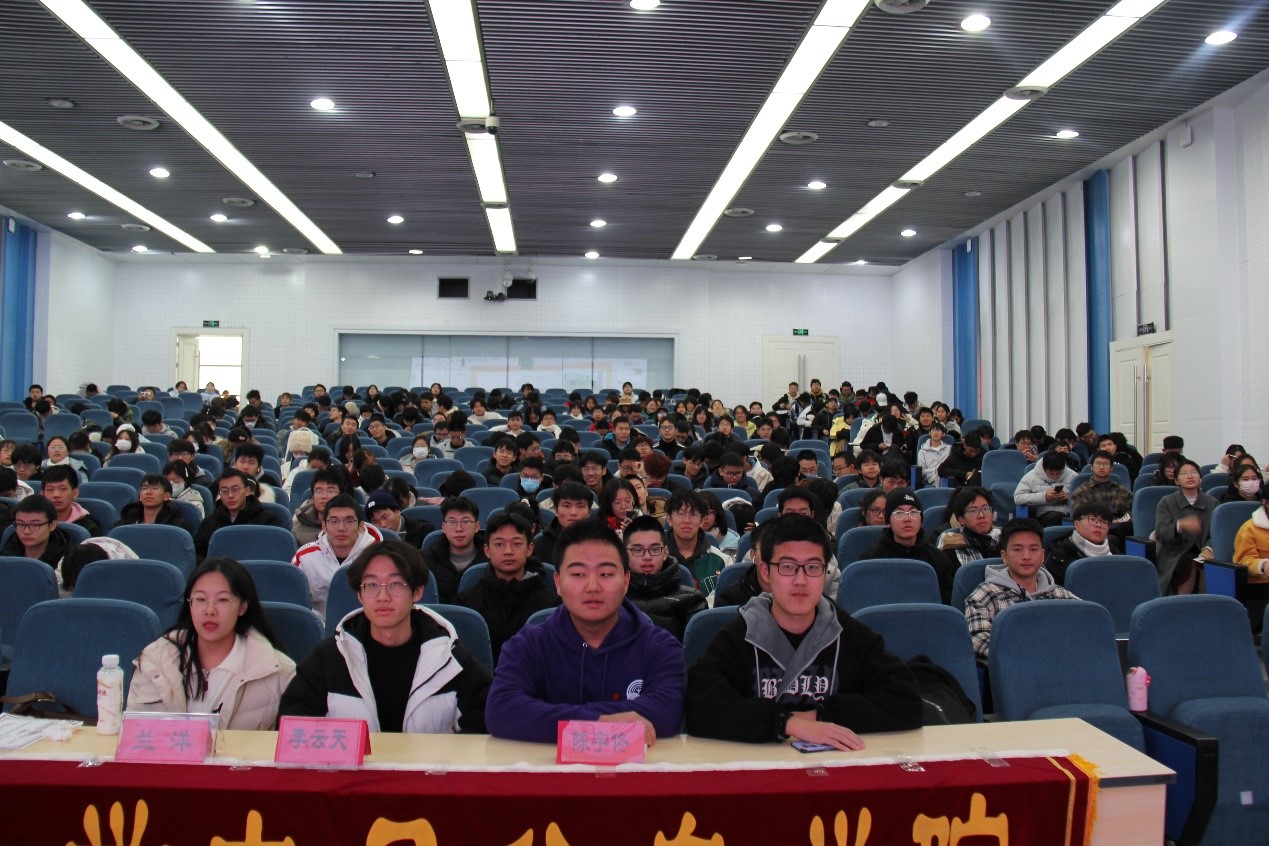 行课开始,主持人颜颖芝和杨鹏俊带领全体学员重温团歌。随后活动进入授课主题,由各班参与“应对白发潮,弘扬敬老风”社会实践活动的同学上台讲述活动过程,分享自己参与活动的思考与感悟,并鼓励同学们多关心老人群体。