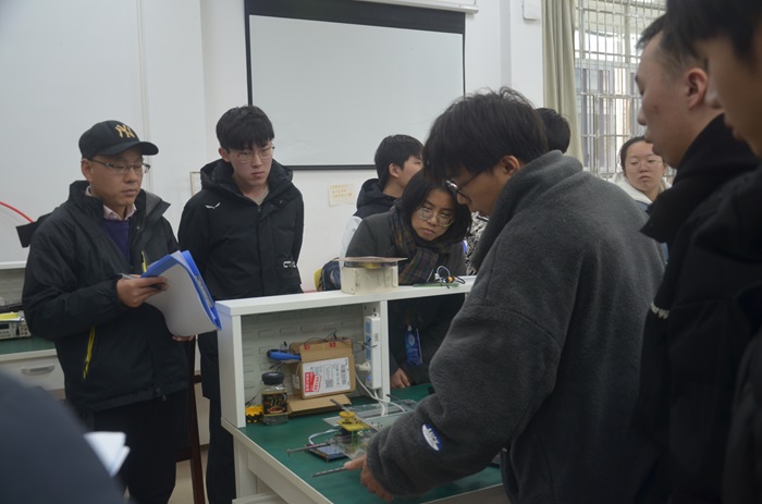 各参赛队伍在接近两个月的准备时间里,经历了自由组队、讨论选题、作品制作、作品提交及测评等环节,共21组队伍参加了本次比赛。在比赛现场,选手们向评审专家们介绍自己的作品,阐述自己的设计原理、所用元器件和实现的功能,同时也将自己作品实现的功能一一展示出来。展示结束后,评审专家们对各组作品进行了点评,针对一些不足之处提出了改进建议,同时也根据演示效果为各组作品进行评分。在本次比赛中,不少队伍兼具创意与实用性的作品都给评审专家们留下了深刻印象,选手们也获得了评委专业细致的指导。