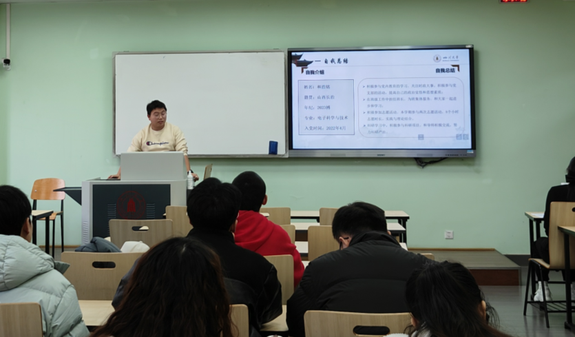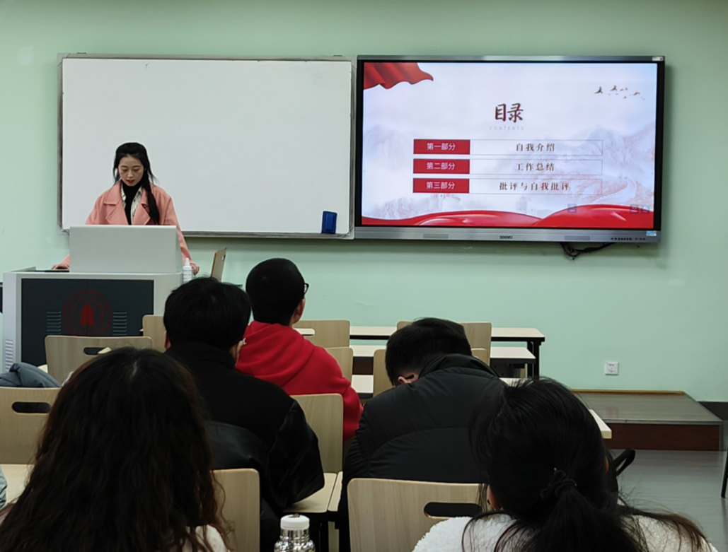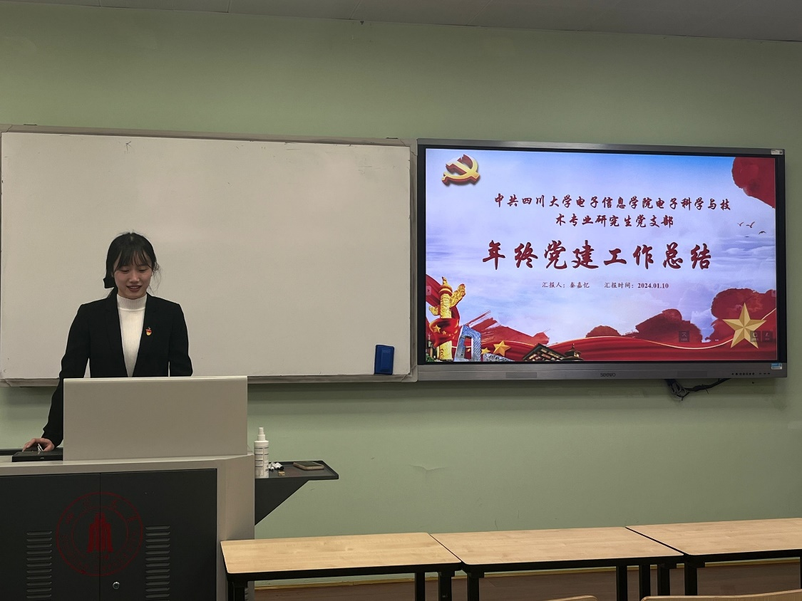 电子科学与技术专业党支部在望江校区基教楼A座305开展2023年终党建工作总结暨批评与自我批评大会,本次大会由第四党支部书记秦嘉忆同志主持,党支部全体党员参会。