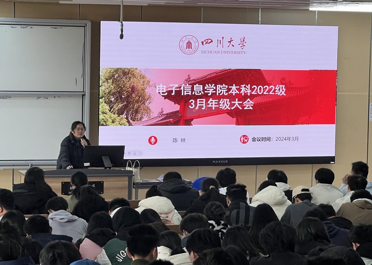 本科2022级3月年级大会在江安校区综合楼C座307召开,会议由本科2022级辅导员陈林老师主持,小欧视频