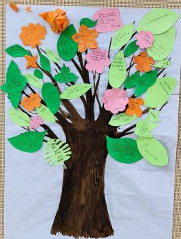 活动最后,团员们确定了年度的公益志愿心愿,把2024年想完成的公益活动写在自己精心裁剪的树叶和花朵上,并在手工绘画的树上进行粘贴,共同构筑了一棵充满爱意的“志愿树”。这棵独特的“志愿树”将会被妥善保存,待今年12月份之时,大家再共同回顾“公益志愿树”上的愿望是否逐一达成。“志愿树”的制作完成,也为本次主题团日活动划上了一个圆满的句号。