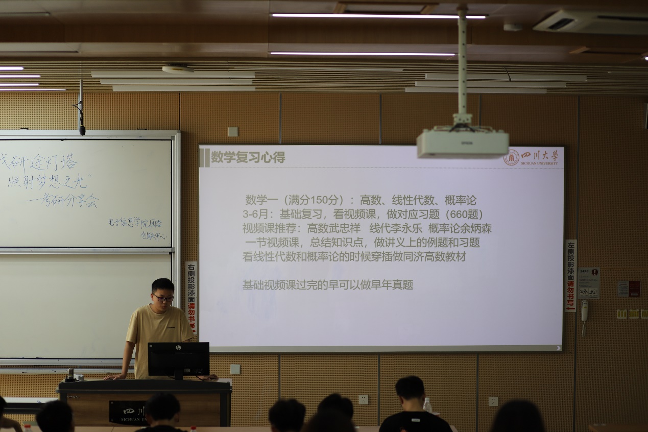学生会创业就业与外联中心于2024年5月26日下午15时,在江安校区综合楼C座105教室成功举办了“考研之路:照亮梦想的灯塔”分享会。