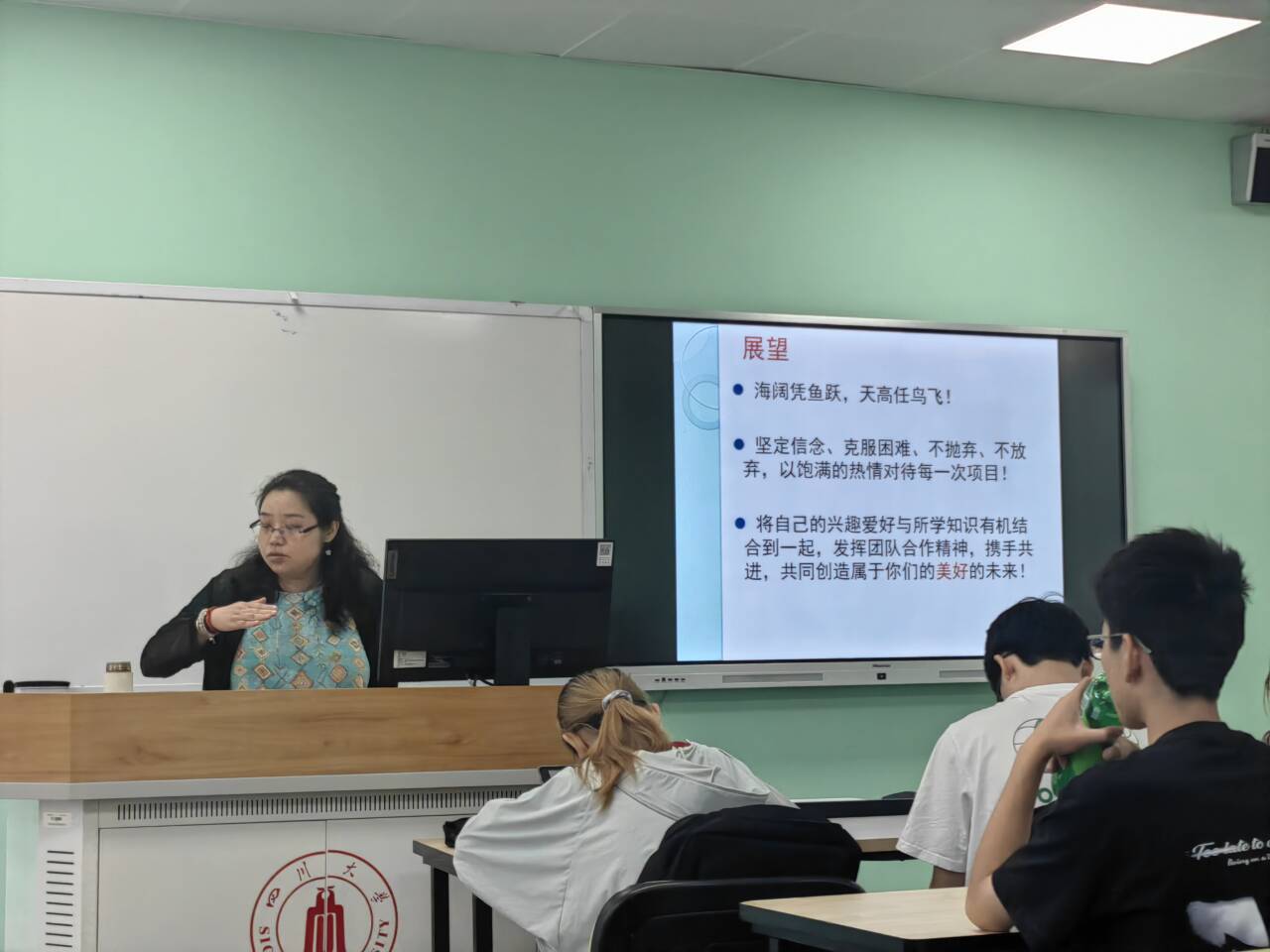 在简单展示个人简历后,李老师给参与茶座会的同学们介绍了其对教学工作及创新人才培养的理解,分享了新奇有趣且种类繁多的大学生创新创业大赛题目并展示了川大优秀学子在大创赛事中取得的佳绩。然后,李老师讲述了她带领学生参与大创的经历,并通过对成功案例的分析对同学们提出了一些建议并发表感想。最后,李老师对同学们表达了真切的展望和祝愿。李老师做完分享后,同学们也积极与李老师交流互动,李老师也根据个人经验为同学们在学习方面、技术方面的等等问题进行细致的解答,也留下了联系方式以便后续与同学们交流。
