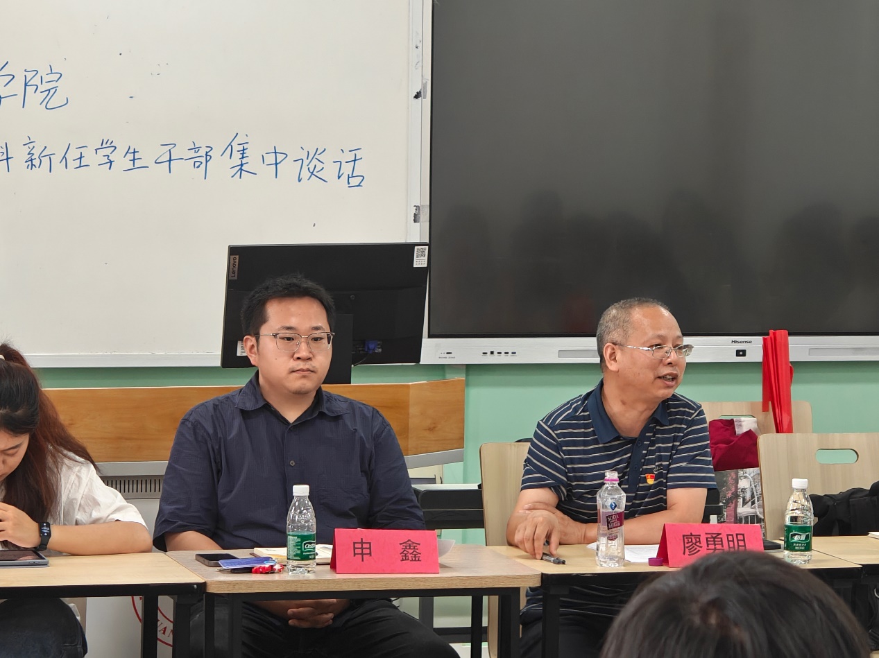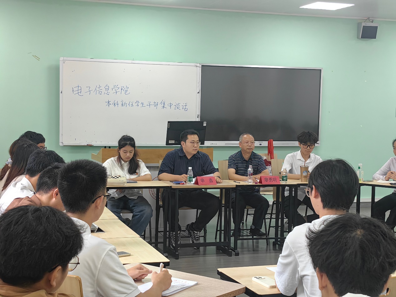 江安校区综合楼B座510顺利举行。本次谈话由院团委副书记、本科2023级辅导员申鑫主持,院党委廖勇明副书记代表学院讲话,本科团学、电子科技园、二级心理辅导站新任主要学生干部参会。