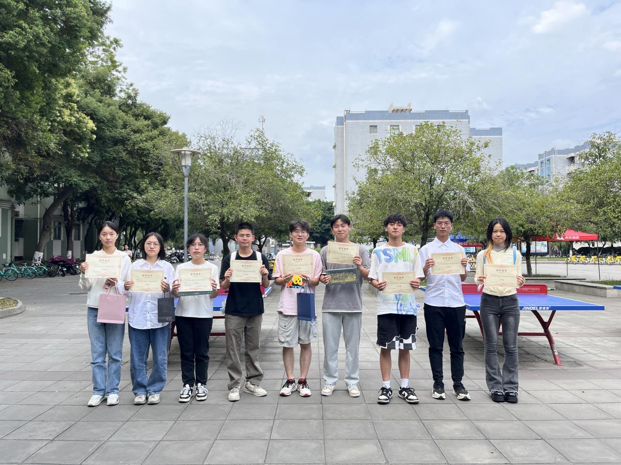 图为获奖同学领取奖状