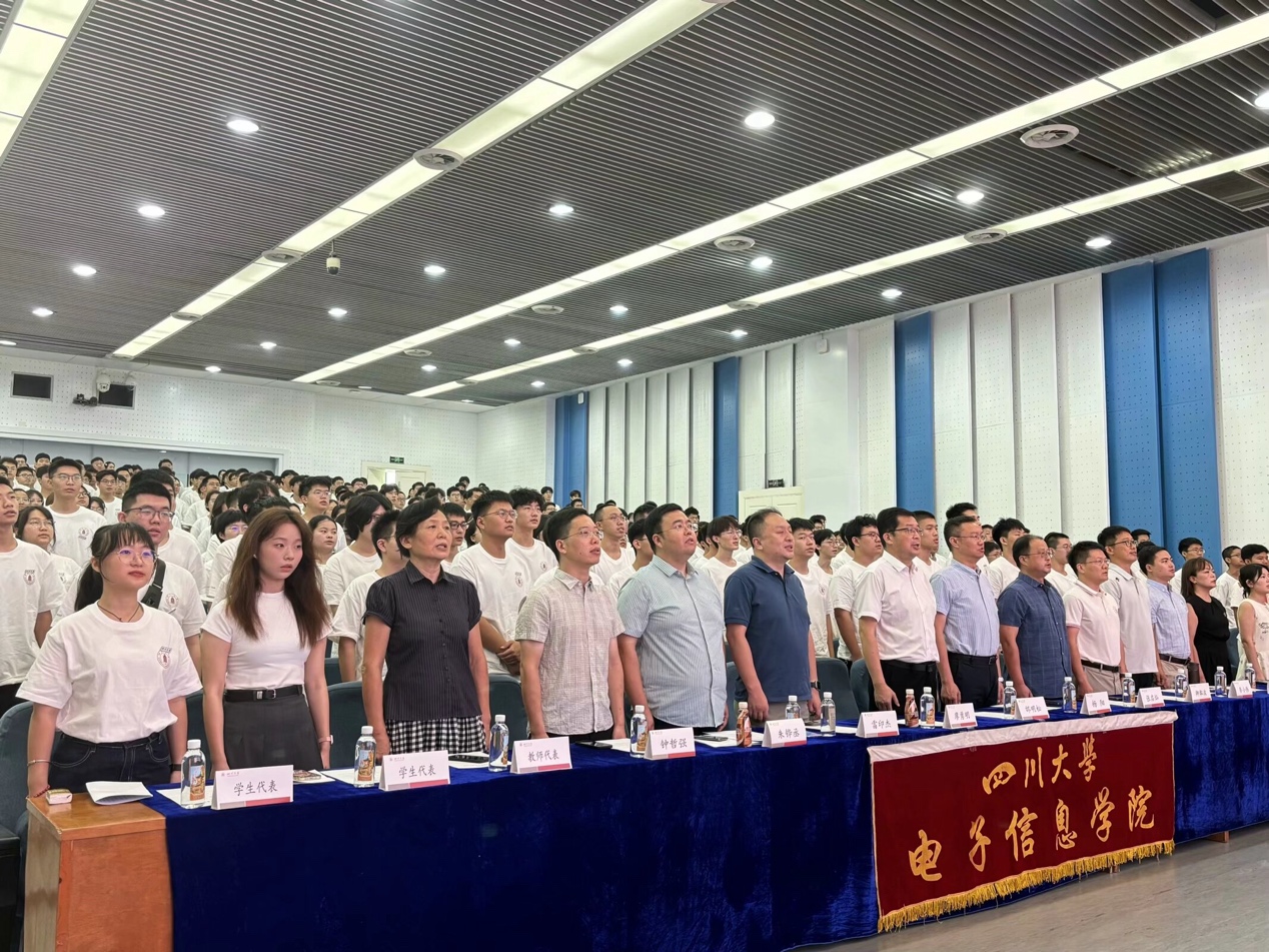 24级本科新生开学典礼在川大江安校区水上报告厅隆重举行。学院党委邰明松书记、院长杨阳教授、党委廖勇明副书记、副院长张启灿教授、副院长雷印杰教授、副院长卿粼波教授、教师代表朱铧丞教授、光学工程系信息光学教研室主任李小伟研究员、光学工程系激光技术教研室主任钟哲强副研究员、信息与通信工程系通信与智能感知教研室主任黄霖宇老师、教导员许虹老师、24级辅导员陈晓娟老师、24级兼职辅导员王丹婷老师和全体2024级本科新生出席典礼。典礼由学院党委廖勇明副书记主持。