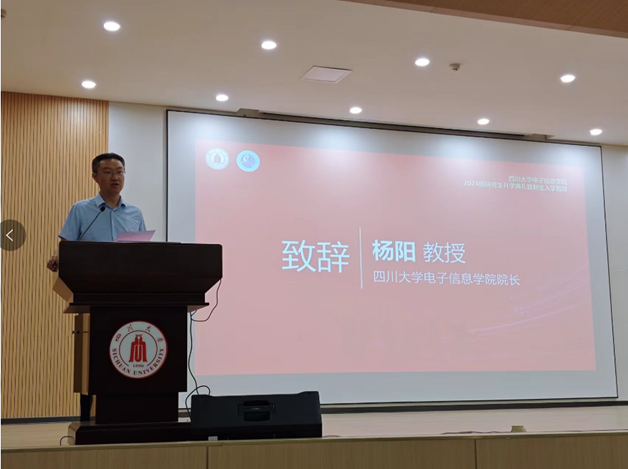 接着,杨阳院长代表全院师生对2024级研究生表示热烈的欢迎和衷心的祝贺。杨阳教授围绕青年学生如何适应研究生生活、研究生学习与本科学习的异同、怎样保持科研定力,如何开展交叉研究等方面,为新生讲授开学第一课。他希望同学们把个人价值和国家前途命运紧紧联系在一起,把学习的具体目标同民族复兴的伟大目标结合起来,立鸿鹄之志,做奋斗之人。