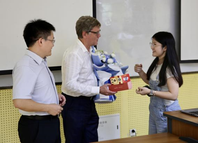 活动最后,研分会代表向彼得﹒安德烈森教授献上鲜花,以示感谢。随后,与会师生与教授合影留念,记录下这一学术交流的宝贵时刻。