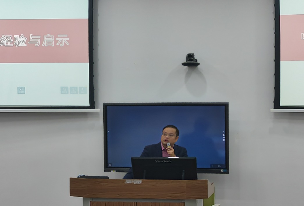 马克思主义学院冯兵教授授课,冯兵讲授以“中国共产党治国经验与启示”为主题向同学们讲述中国共产党百年奋斗的历史经验。冯兵教授指出,思想建设是党建灵魂,坚持马克思主义是思想建设的核心,不断推进理论创新是思想建设的本质要求。同时结合中国共产党治国理政的经验与启示,呼吁同学们要善于学习,牢固掌握解放思想、实事求是、与时俱进、求真务实这四大法宝,并在此基础上努力守正创新。