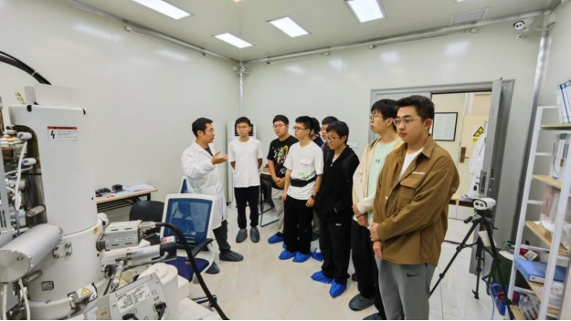 在参观过程中,团队的负责老师们亲自为同学们介绍了实验室的主要研究方向和一些实验设备作用,并在显微镜下亲自动手给同学们展示了一系列光学材料的结构图. 老师的话语中透露出对科学的热爱和对未知的好奇,这种精神深深感染了同学们。作为新一代的大学生,同学们具有敢于质疑,勇于探索,不断追求科学真理的优秀精神品质.