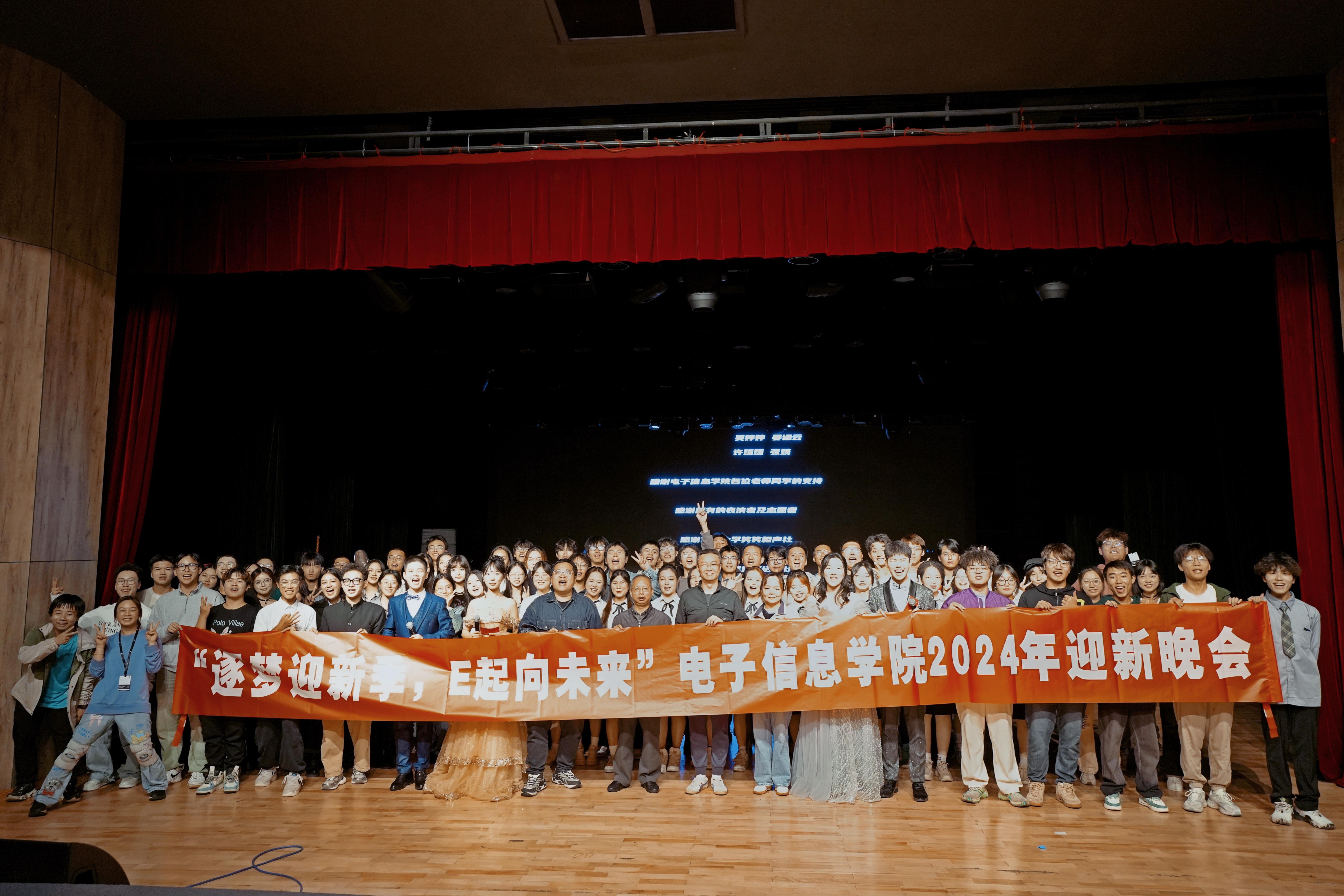面向本科2023级与2024级学生在江安校区艺术学院小剧场隆重举行了主题为“逐梦迎新季,E起向未来”的迎新晚会。学院院长杨阳,院党委副书记兼纪委书记廖勇明,2024级辅导员陈晓娟,2023级辅导员申鑫及450余名学生参与。