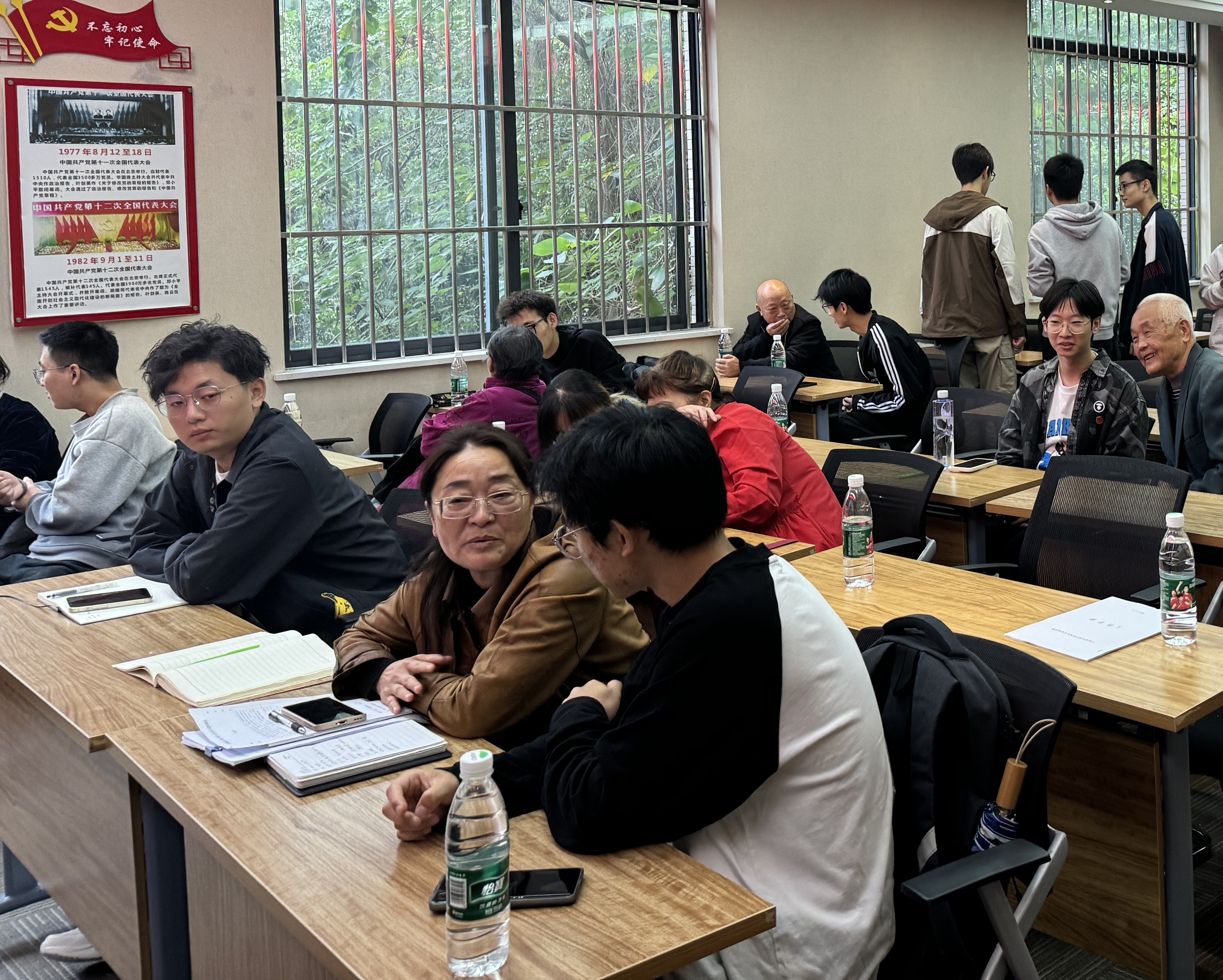图为同学们参与社区党员大会