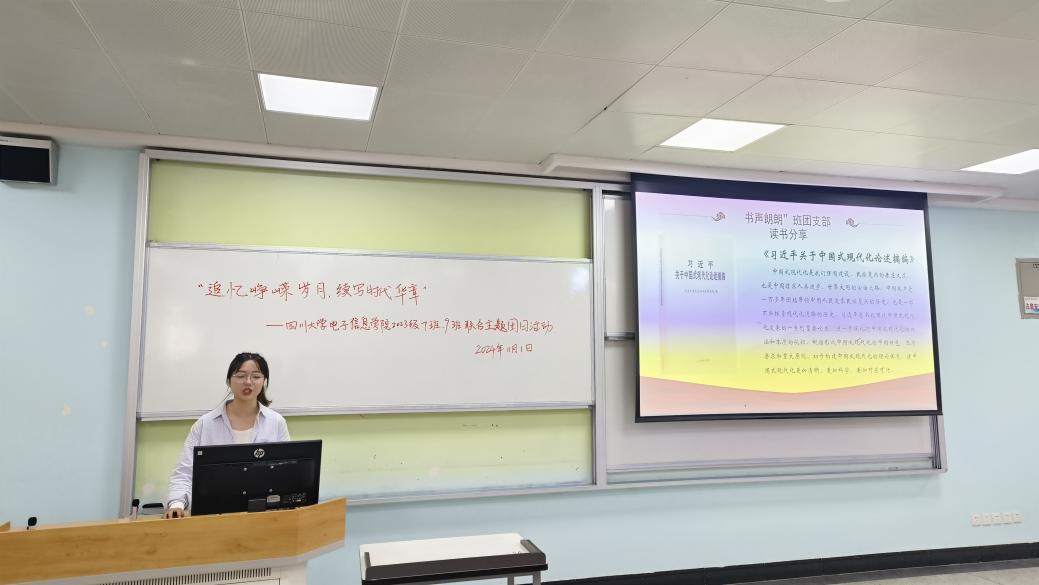 “共学”环节由百川青年学生宣讲团电子分团团长莫斌斌引领。为了让每一位团员都能更深刻、更清晰地理解书中的内容,他以“深刻理解中国式现代化的内涵与特征”为主题精心设计导读环节,并就“什么是中国式现代化”进行了深刻解读,帮助团员青年们精准把握中国式现代化的理论精髓和实践方向,从而在思想的海洋中航行得更远、更稳。