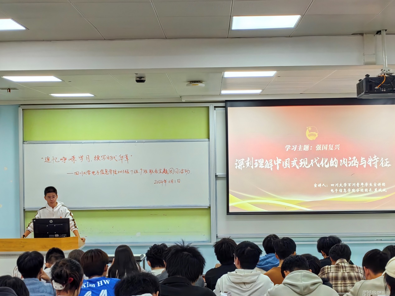 百川青年宣讲团电子分团团长莫斌斌做了以“深刻理解中国式现代化的内涵与特征”为主题的讲解报告,为同学们深入理解中国式现代化、向着强国复兴不断迈进提供思想引领。