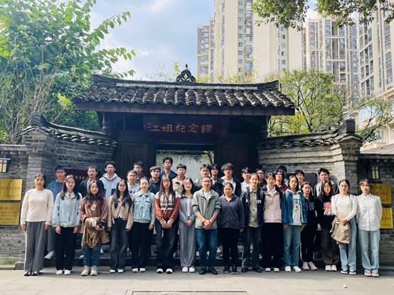 江姐纪念馆是全国首个江竹筠烈士纪念馆,由江姐事迹主展厅、川大英烈展厅、江竹筠烈士宿舍展厅、和景观院落四部分组成,它坐落于原川大女生院旧址,是江竹筠烈士曾经学习和居住过的地方。同学们跟随讲解员的脚步,步入纪念馆,一座手捧书本、身着白裙的雕像亲切地展现在眼帘。聆听讲解员的讲解,站在一百多年前就屹立在女生院前的皂角树下,仿佛与革命先烈进行了一场跨越时空的对话。