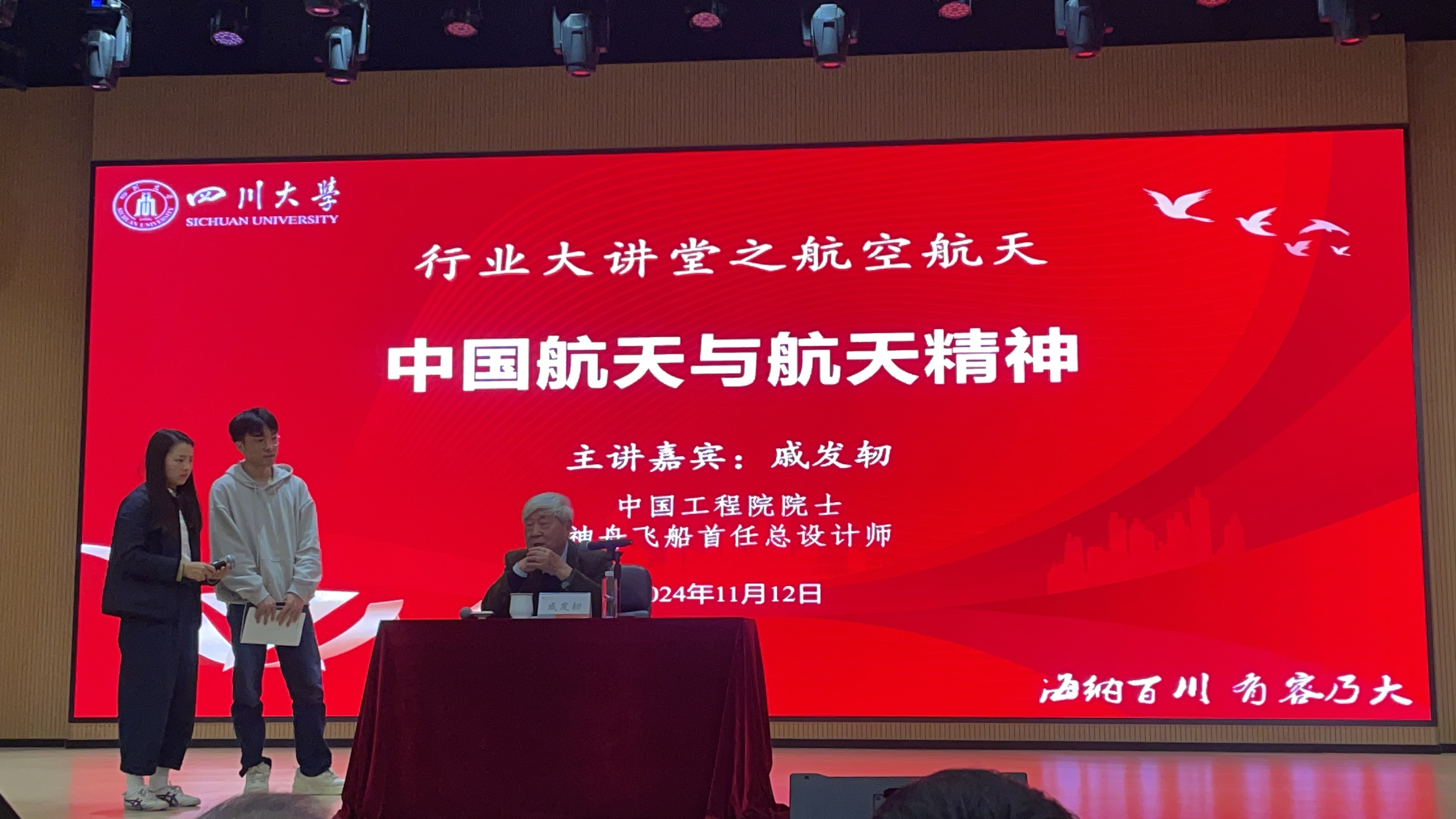 11月12日下午,我校行业大讲堂之航空航天“中国航天与航天精神”讲座在文华活动中心举行。本次讲座的主讲人是中国工程院院士、神舟飞船首任总设计师戚发韧,吸引了来自不同学院、不同年级的本科生和研究生们的积极参与。小欧视频