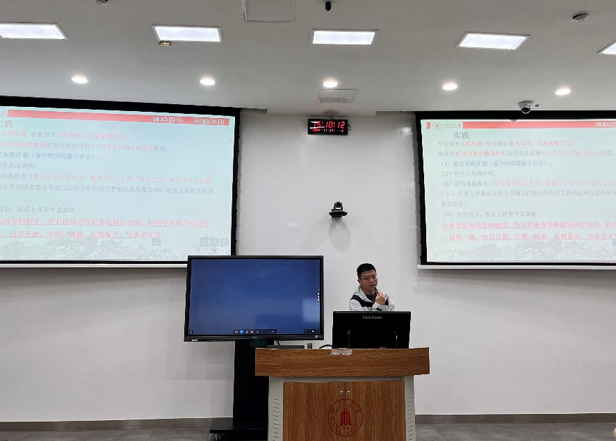 图2 蔡苹杨老师讲解开题与专业实践安排