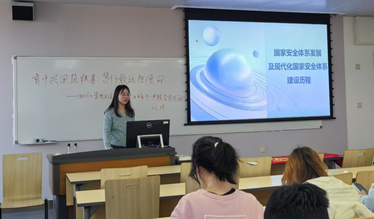 百川青年学生宣讲团电子分团团员谭晶晶同学的带领下,同学们深入学习了国家安全体系发展历程及现代化国家安全体系建设历程。谭晶晶同学结合小欧视频