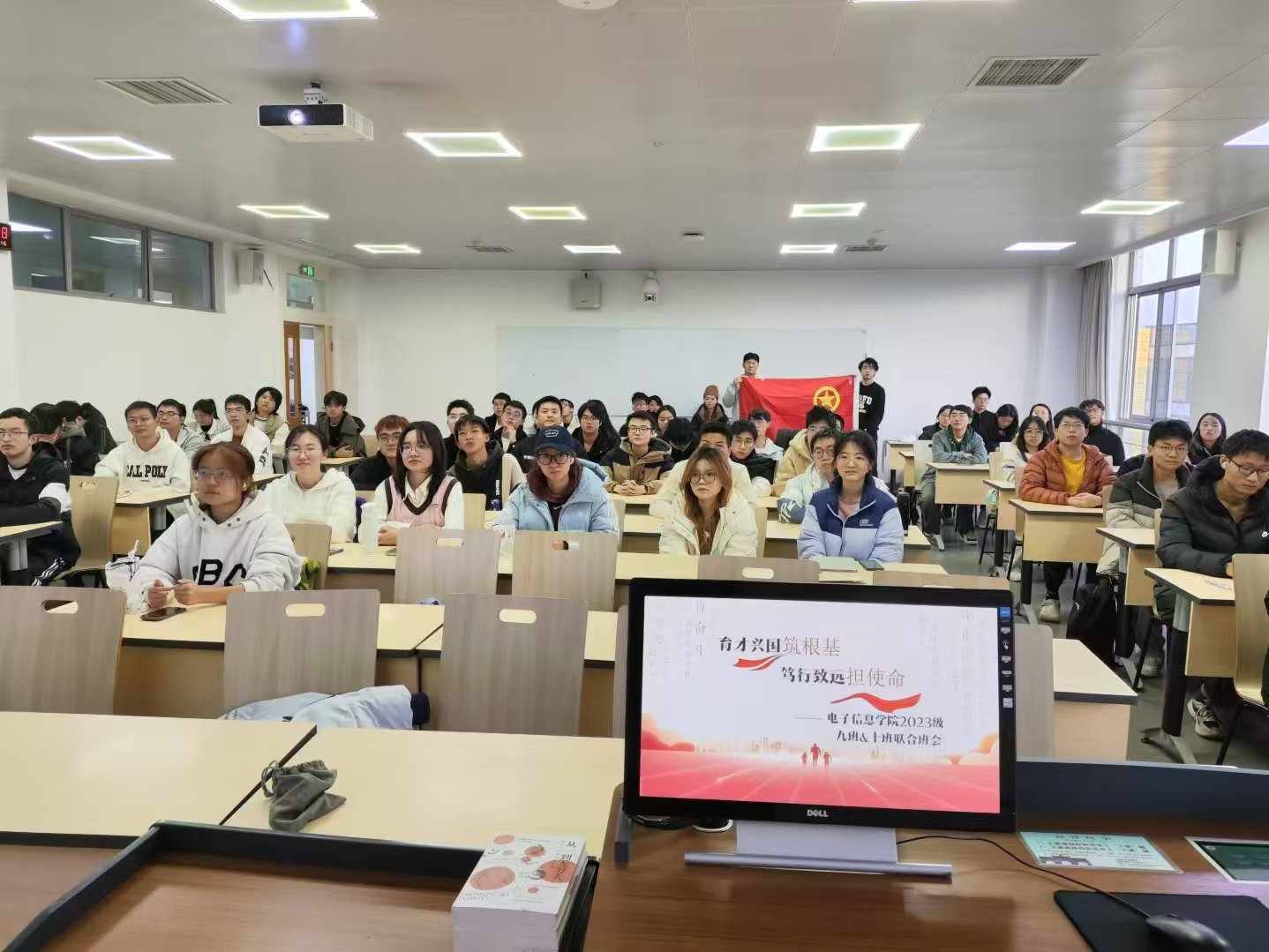 2023级9班和10班的同学齐聚一堂,在江安校区一教A503联合召开了主题为“育才兴国筑根基 笃行致远担使命“的联合班会。