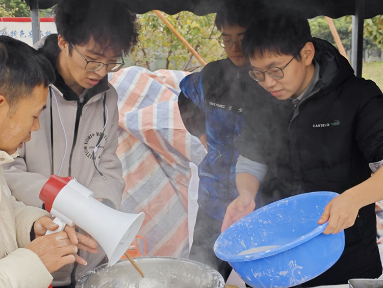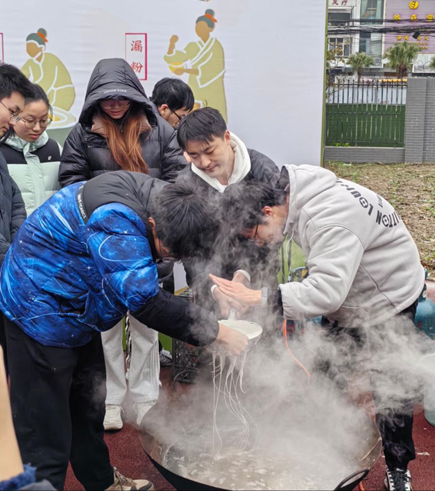活动伊始,专业指导老师向大家生动详细地介绍并展示了古法制作手工红薯粉的流程,从红薯的研磨过滤,到浆液的沉淀打糊,再到面团的揉制与漏粉成型,每一步都凝聚着古代劳动人民的智慧与匠心。同学们也被现场的制作过程深深吸引,全神贯注地聆听着老师的讲解,生怕错过任何一个细节。