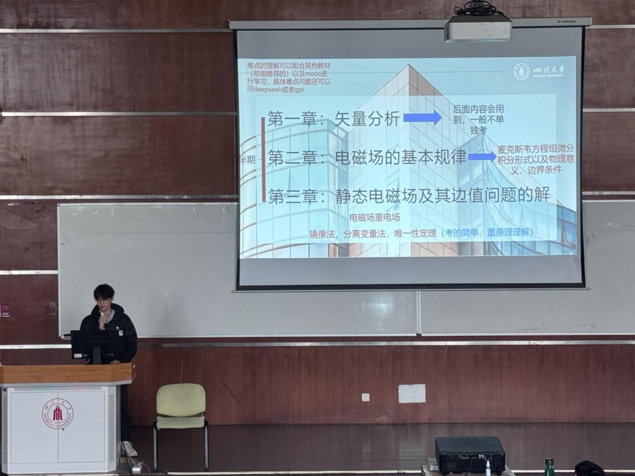 图为彭书睿分享《电磁场与电磁波》学习经验