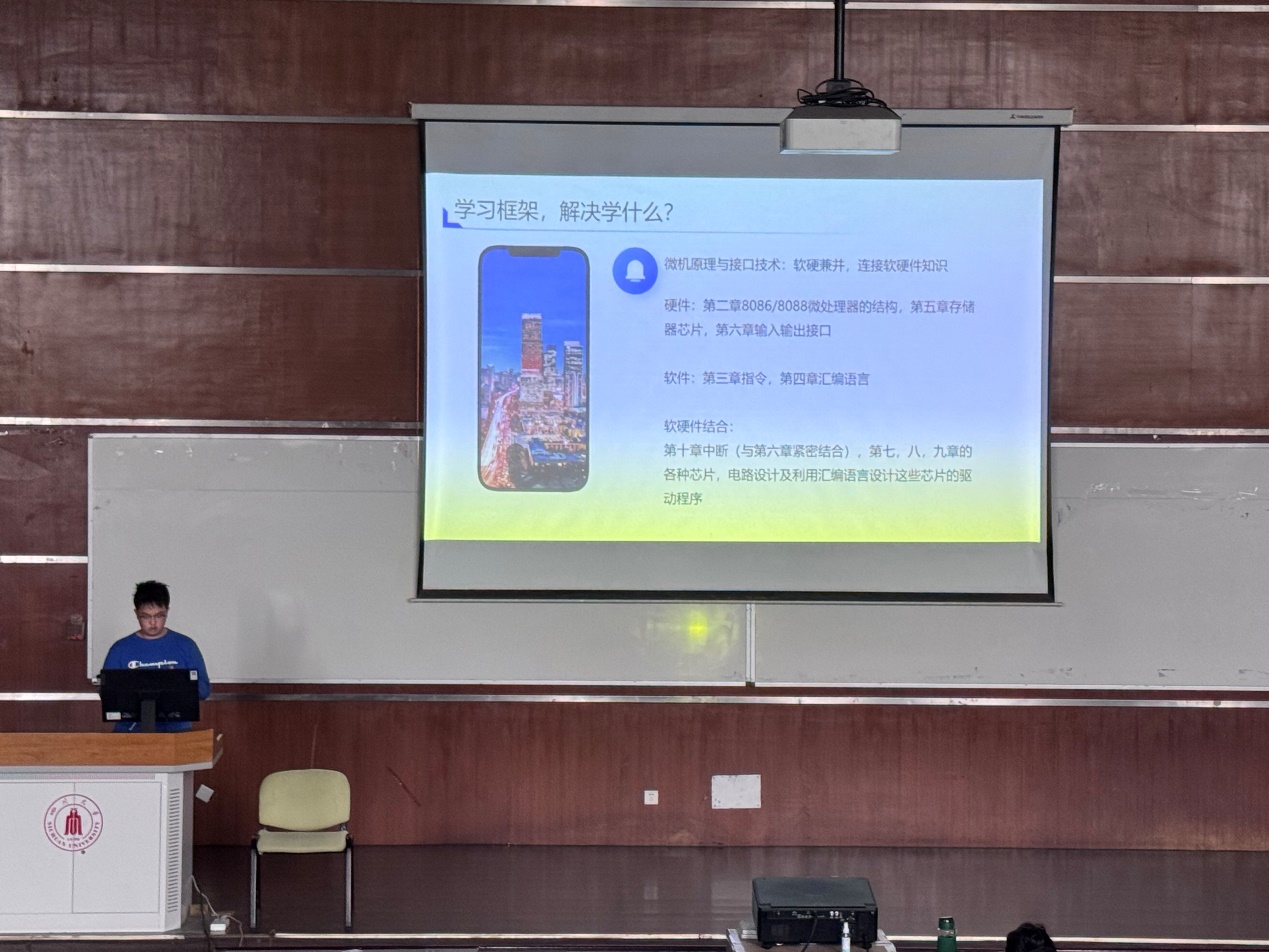 图为牛昊旸学长分享《微机原理与接口技术》专业课学习经验