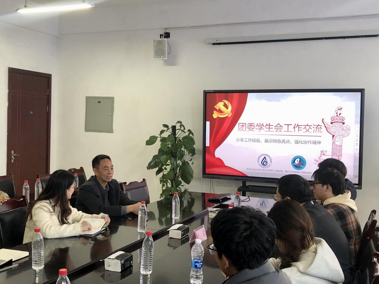 宣讲结束后,曾明友书记同电子师生亲切交流,鼓励双方就思政育人、团学工作、支部建设等方面加强交流合作。双方就低年级党支部建设、团学工作开展、学生干部培养等方面展开了深入讨论。此次交流不仅加强了两院团委之间的联系,更为今后各项工作的开展提供了新的思路和方法。