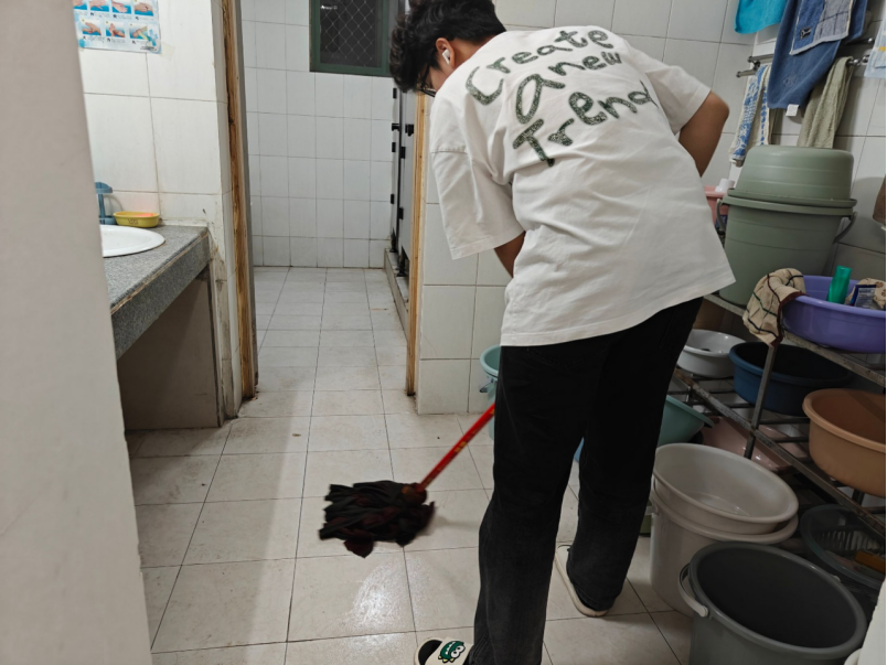 2024级本科的同学们对寝室进行了大扫除,并前往学院公共卫生区进行清扫工作。