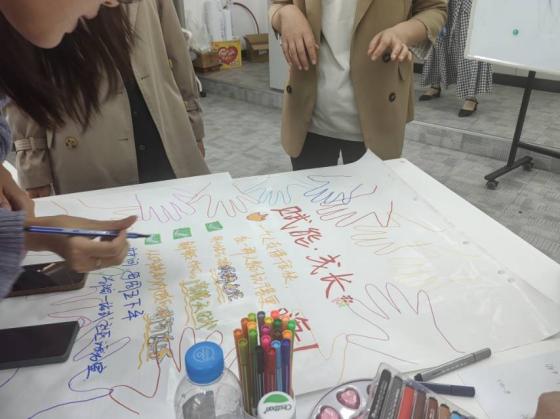 到了第六周,也是活动的最后一周,主要围绕团体辅导形式在学生中的实际应用展开。六周的团体辅导体验即将画上句号,辅导员们迎来了自主设计完整团辅活动的挑战。此前,已有部分老师将活动中的所学应用到学生工作中,他们也分享了实践体会和遇到的问题。在“彩虹传声”环节,一根五彩绳串联起心灵的沟通,把老师们连成老师们真情流露,分享着各自的感悟与收获,言语间满是成长的喜悦与对未来的期待。