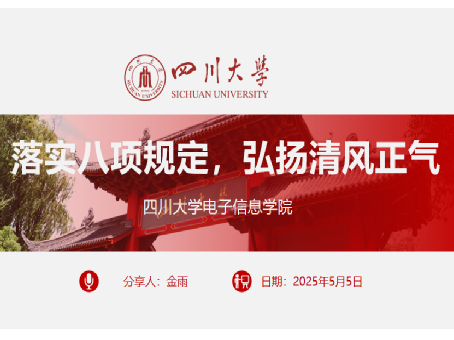 随后,第二位汇报人金雨以八项规定的具体内容作为切入点进行了详细解读,使同学们对于八项规定的含义有了更加深刻的理解,并以此延伸出八项规定的精神传承与深化,即“抓常、抓细、抓长”,环环相扣,渐次推进。