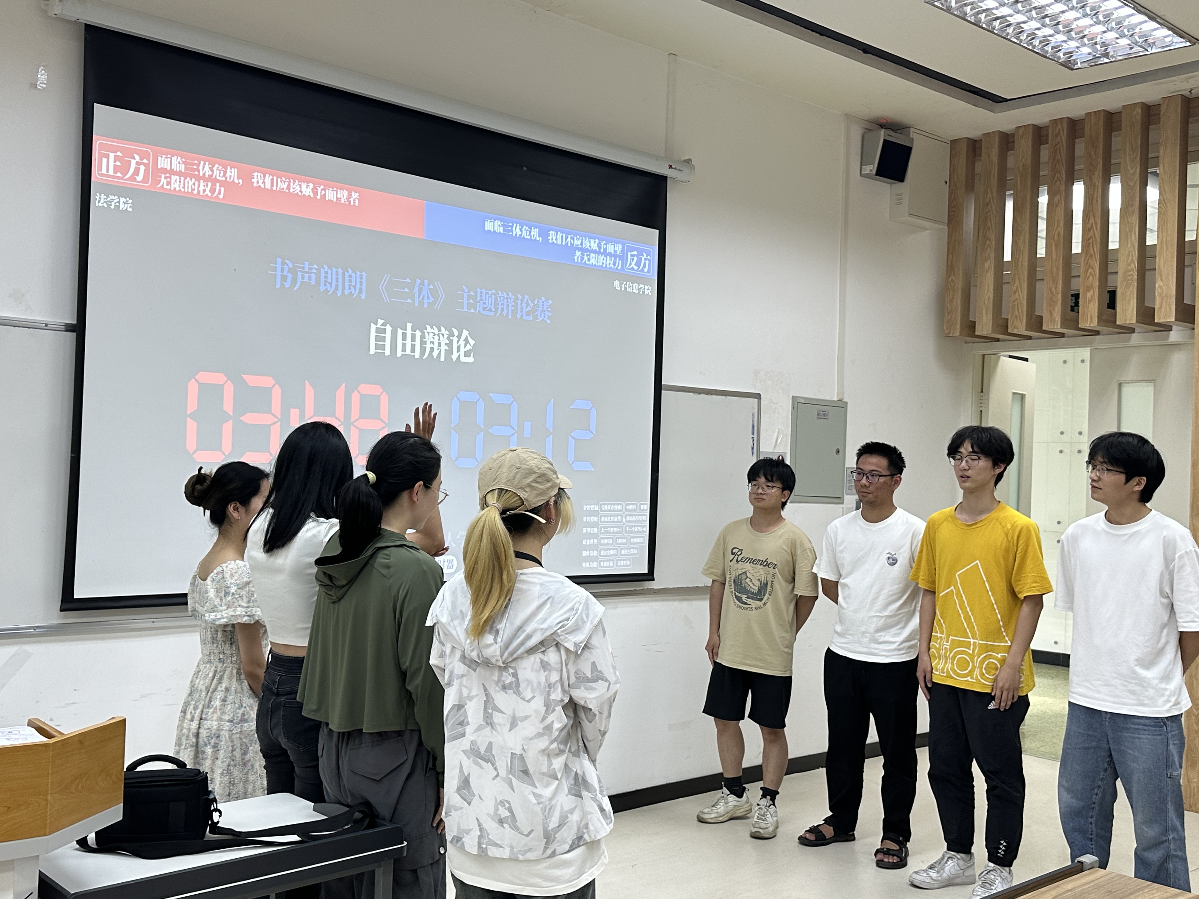 最后,进行了读书分享活动。团支书任冉同学简单介绍《三体》后,两个支部围绕“面临三体危机,我们是否应该赋予面壁者无限的权力”这一辩题展开辩论。正方法学院、反方小欧视频