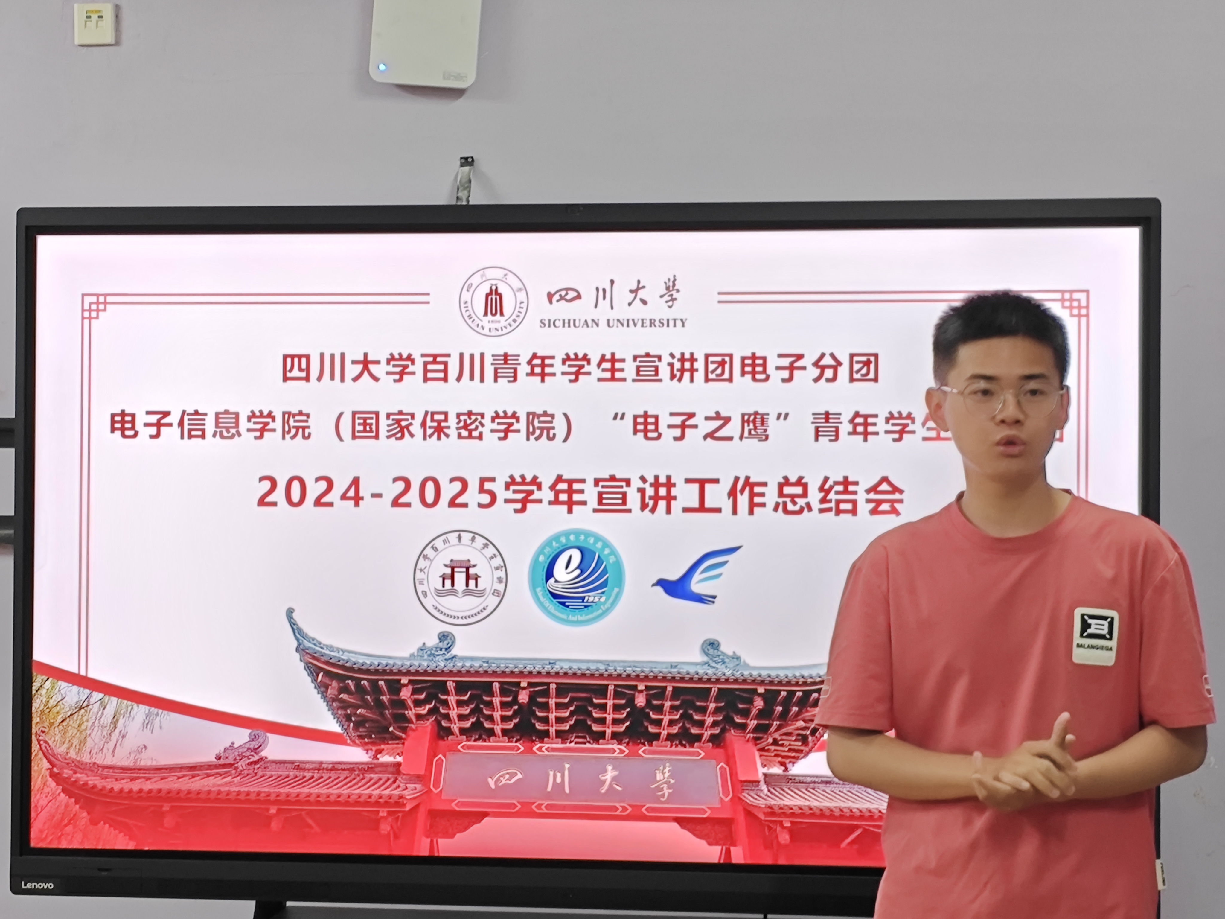 宣讲团团长莫斌斌主持了本次会议。他首先对这一学年宣讲团的工作进行了全面回顾。在过去的一年里,宣讲团紧密围绕 “国家安全” 这一主题,积极投入备课工作,并针对大中小学不同的宣讲群体,精心设计了三种不同的课程,累计开展了二十余场宣讲活动,覆盖人数超过一千人次。同时,宣讲团主讲课程《国家安全,保密先行》荣获了全国高校青年宣讲联盟 2024-2025 学年春季学期精品课程的荣誉称号。