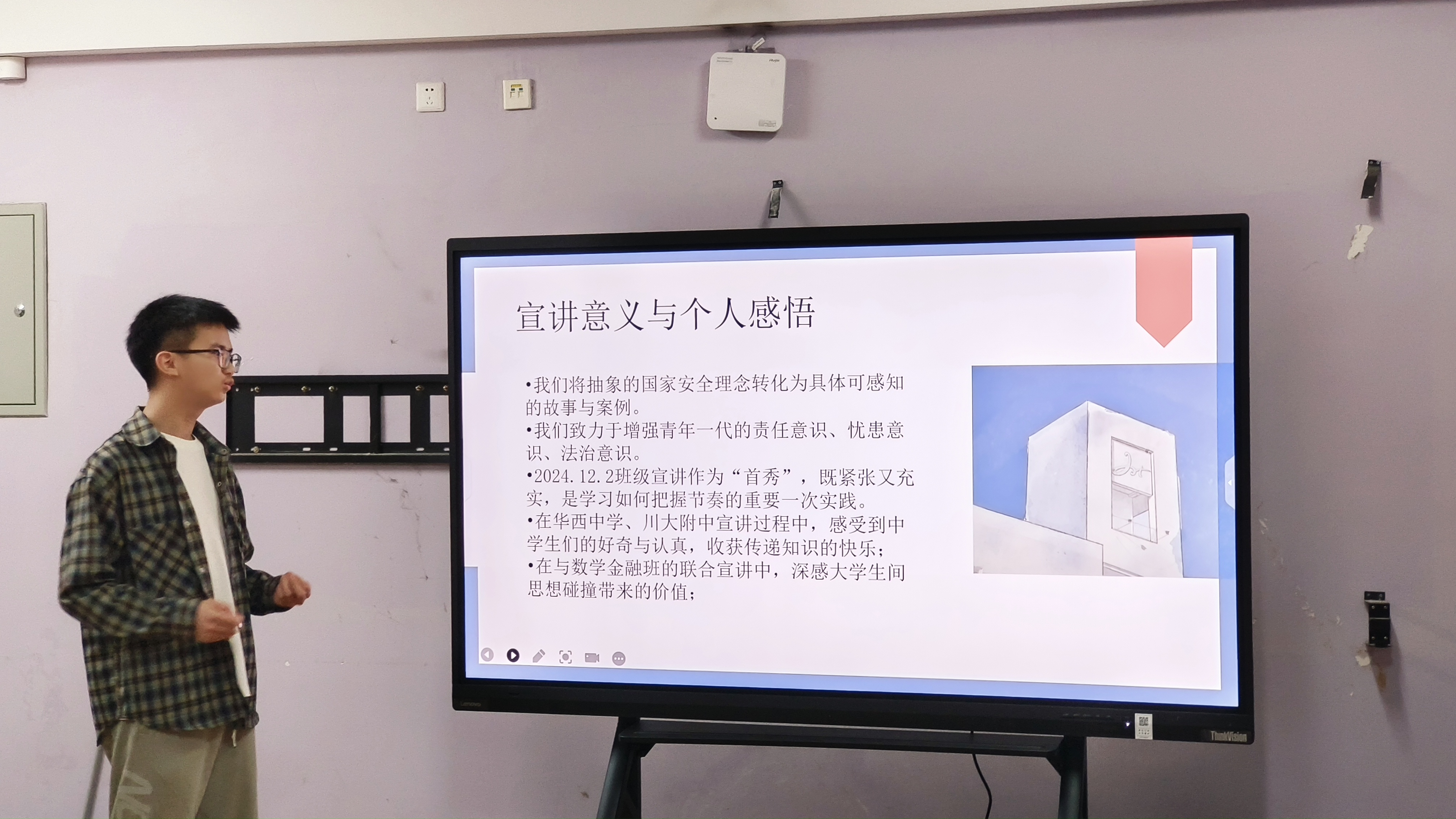 随后,宣讲团成员依次进行了工作汇报。在汇报过程中,吴浩同学分享了自己在宣讲过程中的成长经历,他说道:“从集体备课试讲,到真正走出去宣讲,在这个过程中自己的演讲能力得到了很大的提升。” 而谭晶晶同学则表达了对团队的赞美之情,她表示:“宣讲团的每一位成员都很团结,都在为了讲好国家安全而努力。” 宣讲员们的汇报不仅展现了成员们在宣讲过程中的个人收获,更体现了团队的凝聚力和合作精神。