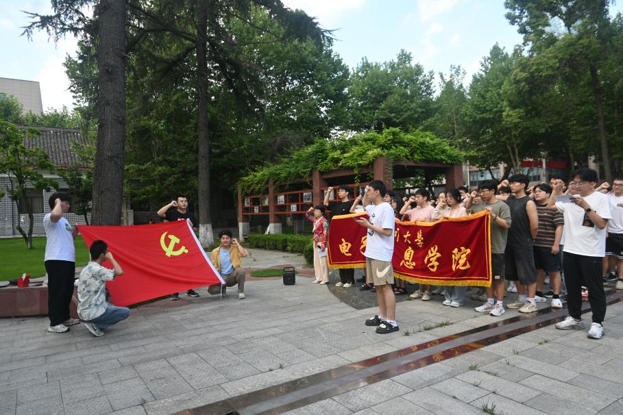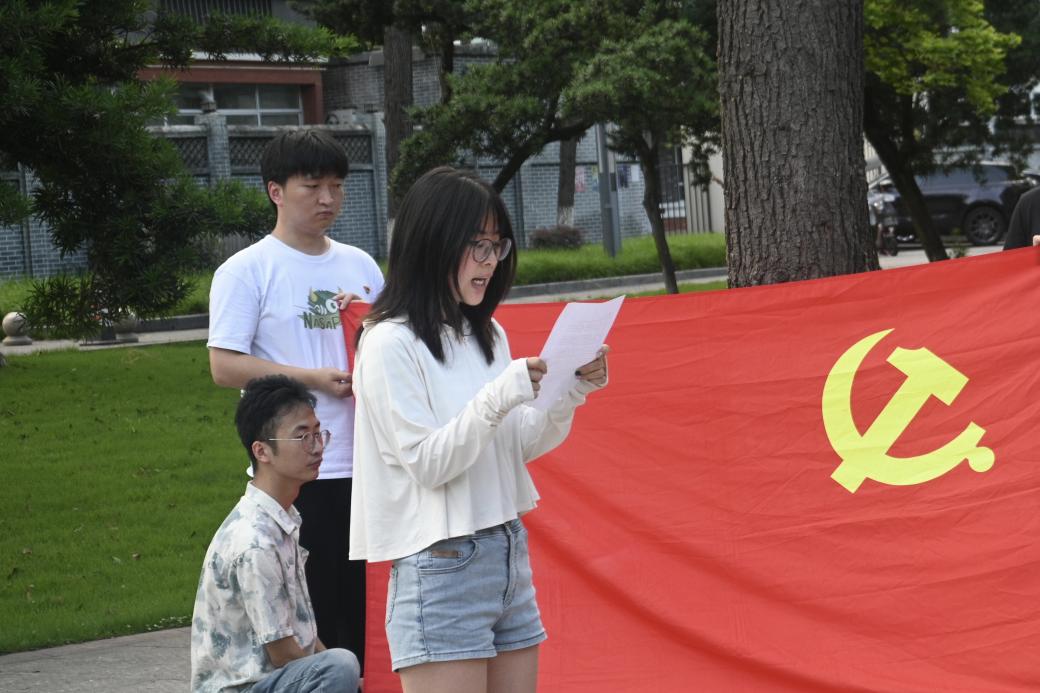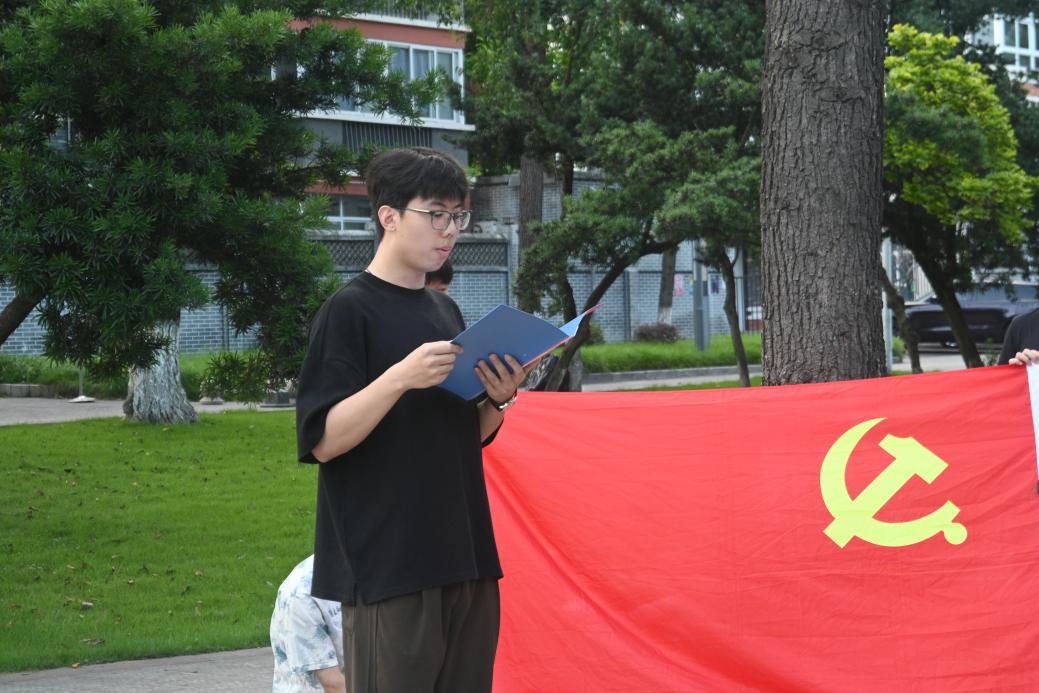电子信息研究生第一党支部书记郭乙颗同志带领全体党员面向党旗,举起右拳,重温入党誓词。“我志愿加入中国共产党,拥护党的纲领,遵守党的章程,履行党员义务,执行党的决定,严守党的纪律,保守党的秘密,对党忠诚老实,积极工作,为共产主义奋斗终生,随时准备为党和人民牺牲一切,永不叛党。”这不仅是一段誓词,更是每一位党员心中不灭的信念,是他们对党和人民的庄严承诺。