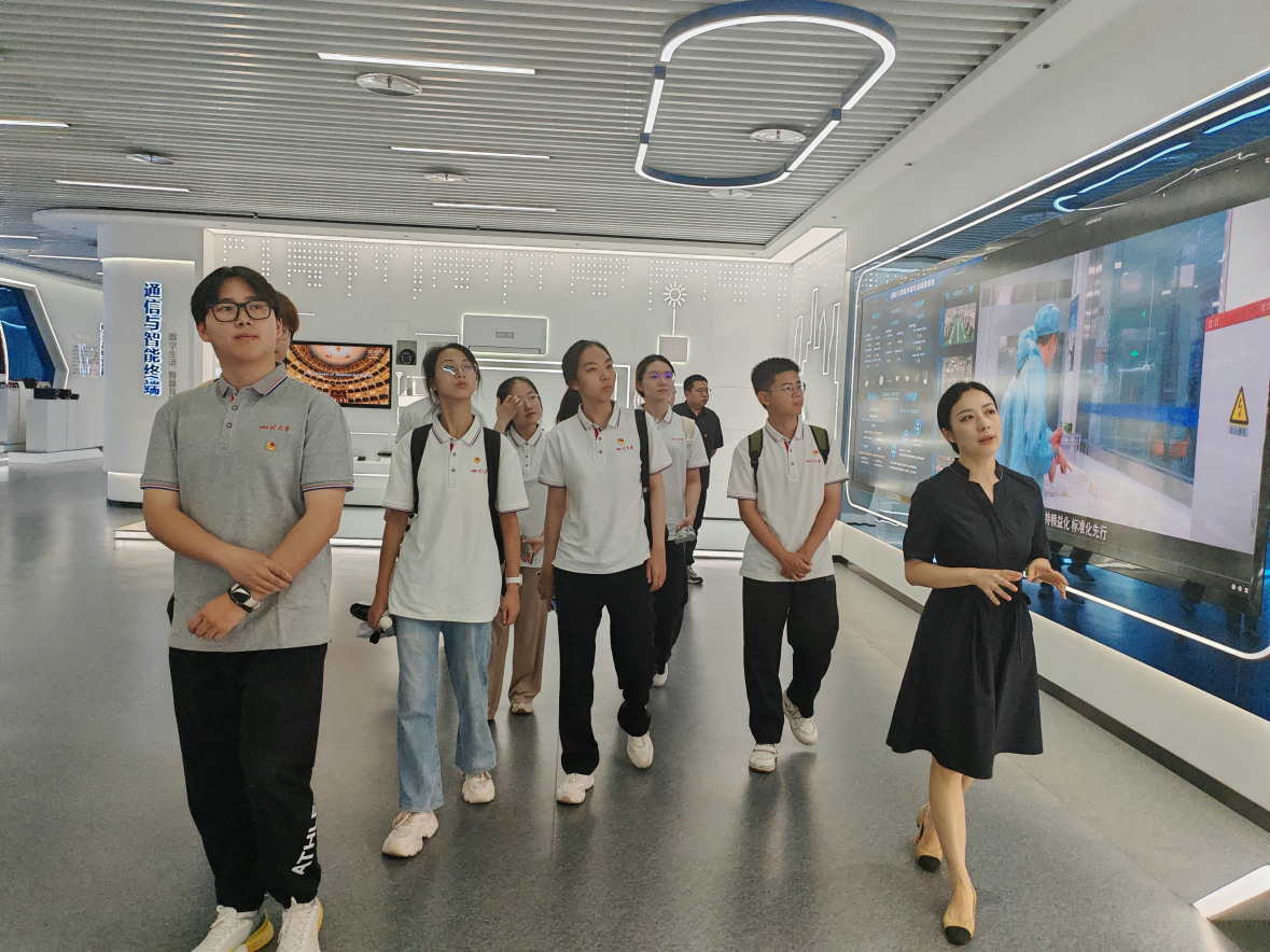 实践团走进九洲集团创新展示中心,深入了解九洲集团的产业布局。九洲集团以电子系统装备、通信与智能终端、软件与数据智能、高端元器件、汽车电子与装备五大板块为核心,形成以创新为驱动、以军民融合为特色、以集团体系化能力为支撑的高质量发展格局。实践团成员秦国耀表示:“此次参观获益匪浅,让我对未来研究方向有了更清晰认识。”
